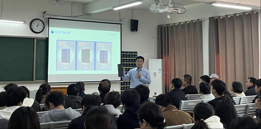讲座开篇,万新军代表学院对史公彬总监莅临学院指导表示诚挚感谢与热烈欢迎,并详细介绍了主讲人的专业背景与行业资历。史公彬大学毕业于苏州大学微电子学专业,自2010年起深耕光伏制造领域,在技术管理、工艺优化、工艺调试及生产运营管理等核心岗位积累了15年以上实战经验。研究方向为高效太阳能光伏电池及组件的开发。