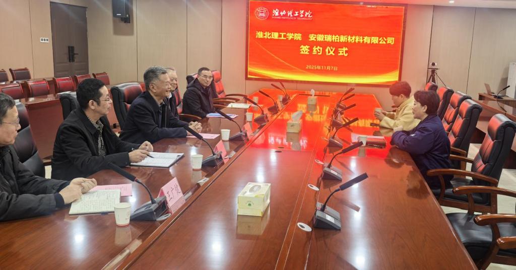 2025年11月7日,立冬节气。逢冬遇暖,这天上午,v站体育官网与安徽瑞柏新材料有限公司签署校企合作协议。学校校长杨兵、副校长汪建利,教务处处长陈国平、人事处处长侯为波、科技处处长王广健、v站体育官网院长万新军等人热情接待安徽瑞柏新材料有限公司总经理张燕、人事行政部经理徐月霞一行,并共同见证协议签署。