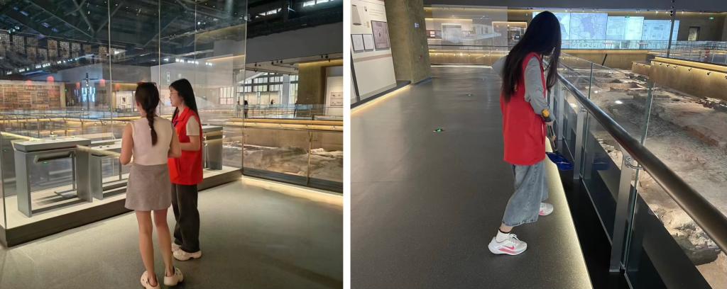 同时,队员们还主动承担起展馆的卫生清洁工作。他们认真打扫展馆的各个角落,擦拭展柜、清理地面垃圾,为游客们创造了一个整洁、舒适的参观环境。在志愿服务过程中,队员们不怕苦、不怕累,充分展现了当代大学生的良好精神风貌和社会责任感。通过与游客的互动交流,队员们也锻炼了自己的沟通能力和表达能力,进一步增强了服务社会的意识。