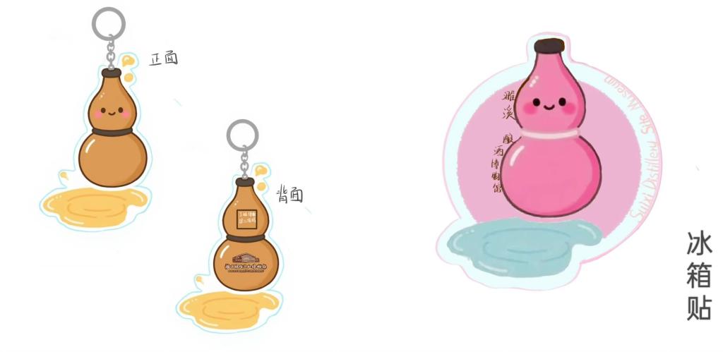 其中酒葫芦的形象代表着酿酒文化的传承,唤起人们对古法酿酒技艺,悠悠酒史的联想,是博物馆酿酒文化的具象缩影。以可爱化设计拉近大众与酿酒文化的距离,让古老酒文化更亲切、更轻松、更有趣。它们是酿酒文化的趣味载体,用萌趣形式连接传统与现代,是分享酒文化的小巧思。